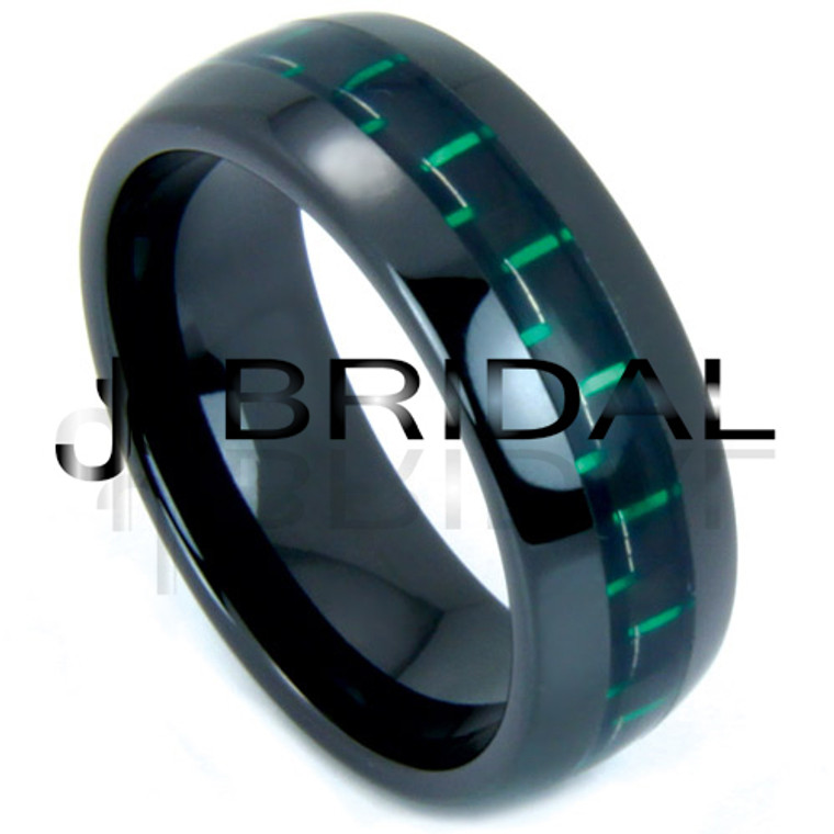 WildgiraffeBlack ceramic ring with green carbon fiber inlay.