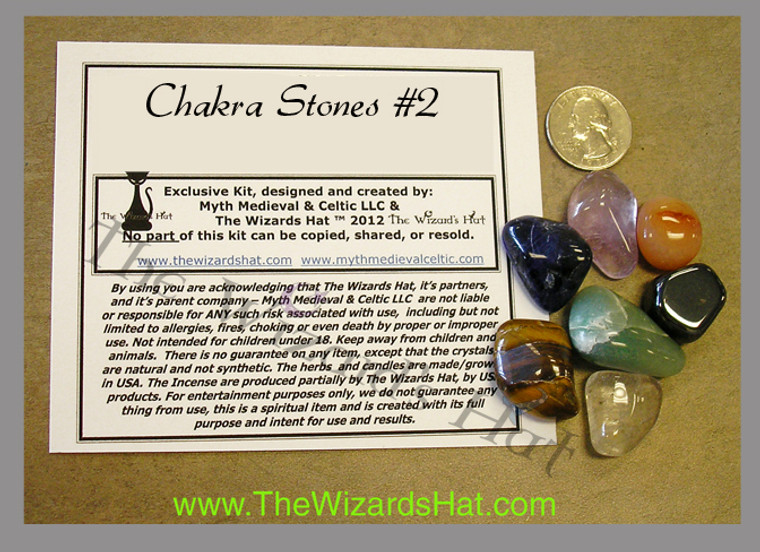 There are several stones that can be used for several of the different Chakras, we have done research and compiled several variations to get you the best results. Exclusive Kit, designed and created by: Myth Medieval & Celtic LLC & The Wizards Hat c2023. No part of this kit can be copied, shared, or resold for profit. www.thewizardshat.com www.mythmedievalceltic.com